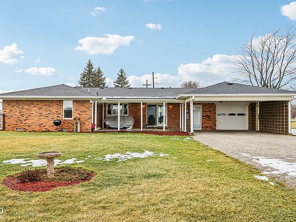 Welcome to this beautifully maintained ranch-style home nestled on just under an acre of land! Featuring 3 bedrooms and 2 full bathrooms, this property offers the perfect blend of comfort and style. Step inside to find new carpet and stunning hardwood floors that add warmth and character to the home. The kitchen is a true standout, boasting quartz countertops and a convenient kitchen-dining room combo perfect for hosting family and friends. The property includes a finished garage for added versatility, as well as a carport and oversized shed for extra parking, workshop, or storage. Enjoy the charm of a well-loved home in a serene, spacious setting. Beautiful landscaping blooms in the spring/summer- see attachments for additional exterior & yard photos. Home is in a $0 down USDA loan eligible area. Don't miss out-schedule your showing today!