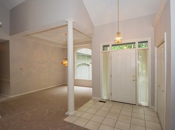 Beautiful Forest Coachhouse. Freshly painted and carpeted. Enter to a sunlit vaulted greatroom and formal dining room with gas fireplace and and builtin cabinets and bookshelves. The skylit kitchen is open and has an abundance of cabinets and workspace. If you are a fan of nature you will want to spend your time in the four season sunroom viewing the birds and other small animals or just curling up with a good book. The first floor master suite includes double vanity, jacuzzi tub, seperate shower and potty room. A jack and jill, bedroom and office is also on the first floor. Upstairs you will find a very large bonus room (bedroom) including a full bath and oversized walk-in closet. The three full baths each has a built-in towel warmer. Wonderful community and close proximity to shopping and dining.