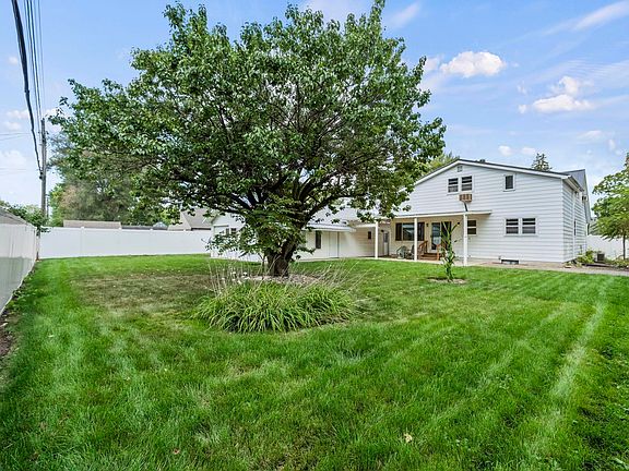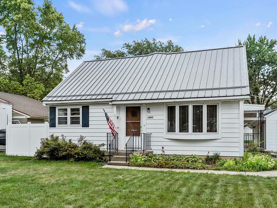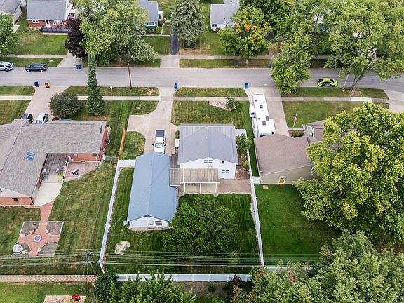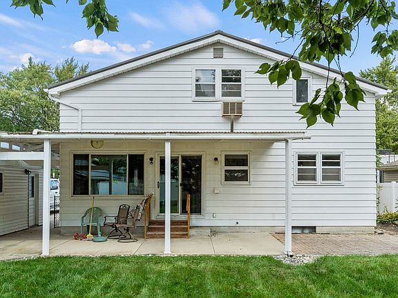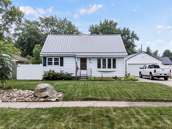 Not your typical cape style home. This home has been added on to. The main floor offers a spacious living room with a bay-window. The redesigned kitchen is ideal with beautiful cabinets to the ceiling, a corner desk, all appliances remain: Refrigerator, Dishwasher, Flat top electric range and Microwave. A nice breakfast nook, and main floor laundry room with washer and dryer. Two generous sized bedrooms and a full bath on the main floor plus two additional bedrooms upstairs with a large landing, great for a sitting area and a second full bath. Two additional bonus areas for storage or work out space. Massive amount of storage through-out this home. The back has a covered patio plus an open bricked patio. A unique 2 car garage has a two-car garage up front. The back is a sitting room with numerous windows and another space with an overhead door out the back perfect for lawn equipment. Top it all off with a 6' vinyl fenced yard, A new roof in 2023 and one in 2020, Many new windows, Furnace and Central air new in 2018. Don't miss this one!