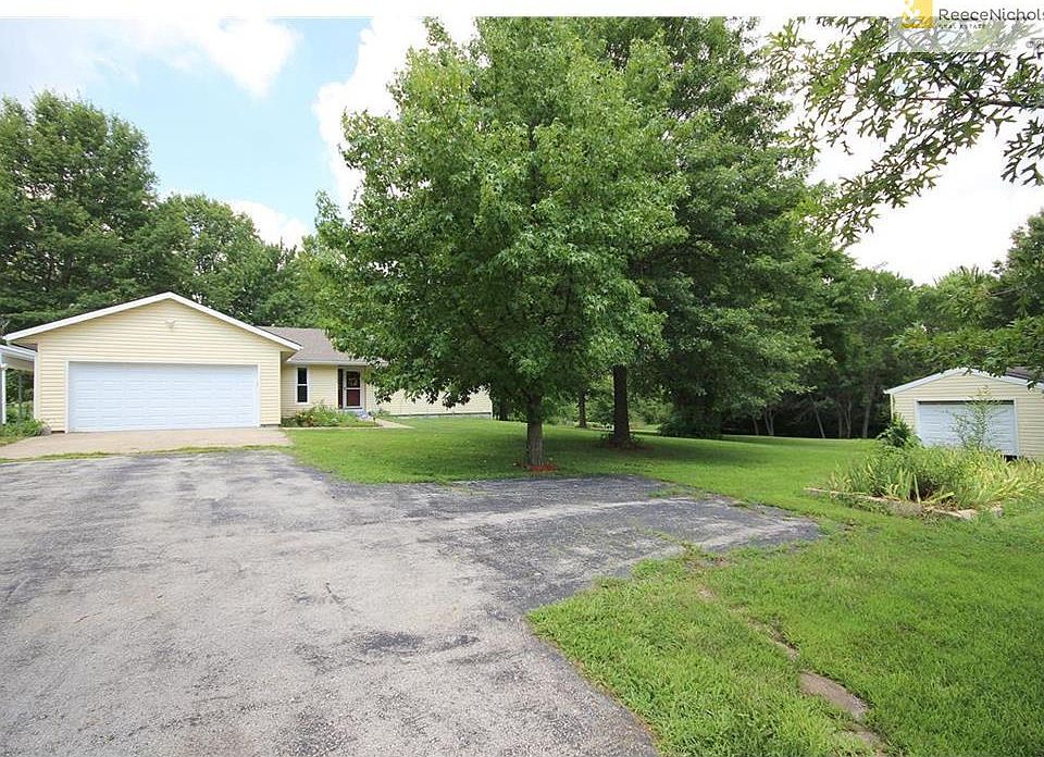 3 Wooded Country Acres with pond, detached garage or workshop with electricity and concrete floor plus Carport and 2 attached garages. Paved Road and just 1/4 mile from Jackson, Cass County Line- 15 minutes from Lee Summit. Large covered deck to enjoy watching the wild life. Dog run, &+ fenced. Ideal level acres for horses. New carpet, fish pond, 1st floor utility, newer roof, siding and windows Basement is finished except flooring with inside entrance. Could have a non-conforming 4th bedroom.