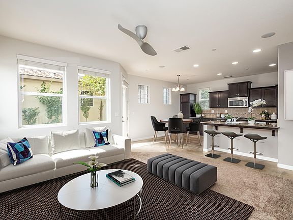 Located in the highly sought after & meticulously cared for Harlan Ranch Community w/ pool. This corner lot, single owner, hardly lived in home offers an open concept w/ an abundance of natural light that floods in from all sides. This move-in-ready home is outfitted w/ custom paint throughout, & surround sound in the living room. Step into the well cared for kitchen where one will find a large island for all to gather around when entertaining or preparing a meal, a wall of cabinets which offer plenty of storage, stainless steel appliances & sparkling granite counters. On the lower level there is a conveniently placed guest bathroom tucked under the stairs. Between the living room & kitchen there is a door that leads to the private, low maintenance patio where one can enjoy some fresh air & serenity. On the second level one will find all 3 beds, 2 additional baths, laundry room & loft. The generous sized loft is perched at the corner of the home.