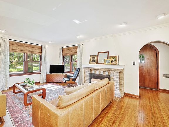 Nestled in the heart of Riverside, this classic English Tudor home seamlessly combines timeless charm with modern upgrades. Originally constructed in the 1930s, this meticulously remodeled residence maintains the integrity of its era with intricate brickwork archways, a welcoming porch, and an arch-accented ledge flowerpot area. As you step through the rounded arch front door, you're greeted by a brass mail slot, a charming nod to the home's heritage. Inside, the living room boasts a decorative fireplace, set against original long leaf oak hardwood floors and crown molding that flows throughout the home. The kitchen impresses with stainless-steel appliances, including a gas stove/range and built-in microwave, granite countertops, a built-in china cabinet, and a quaint old phone nook. Enhancing the Tudor ambiance, the kitchen features a brick paver floor. The main floor offers a rare feature for its time—a full bathroom and master bedroom. The bathroom is a standout with subway tile surround and beautiful custom paneling, adding to its elegance. Upstairs, two generously sized bedrooms await, alongside a versatile room currently used as extended closet space but adaptable for a reading nook or office. The upper-level bathroom is adorned with subway tile wall surrounds and black and white penny tile flooring. Descending to the basement, a cozy family room offers flexibility, featuring a daylight escape window and a large storage closet that could easily convert it into a fourth bedroom. Situated on a spacious corner lot, the property boasts a well-manicured lawn with a sprinkler system, a large fenced backyard with beautiful landscaping including a peach tree and two cherry trees, and a sizable patio perfect for entertaining. Adjacent to the kitchen, the patio offers convenient access and overlooks the backyard, ideal for children and pets. Follow the brick-lined walkway to discover a charming child's playhouse with a slide and sandbox. Completing the ensemble is the newly added 24x24 garage with a patio, providing ample space for parking and additional outdoor enjoyment. This remarkable house is a true gem in Riverside and won't last long!