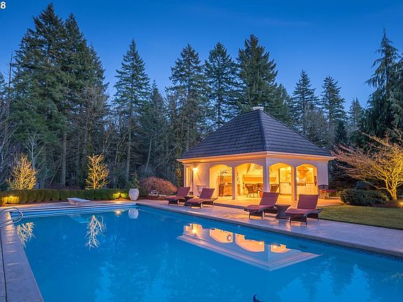 Distinctive Architectural masterpiece with box beam ceilings on 5 manicured private gated acres. Covered outdoor kitchen with fireplace, surrounding the full-size pool. Plenty of parking for guest behind the gates. Close proximity to I-205 Bridge & downtown Camas. Impeccable estate with grand staircase, 6 fireplaces, 5-bedroom suites & upstairs bonus room. Beautiful Tuscan Wine cellar below, Italian walnut doors, limestone kitchen.