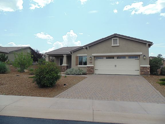 Beautiful Prescott Lakes Home inside of a gated community! Popular Augusta model. Upgraded kitchen with granite counter tops & stainless steel appliances, Open concept living with great room fireplace with new carpet throughout. Split floor plan with high ceilings. Level driveway and entry. Large fenced backyard. Prescott Lakes Club Membership offers Clubhouse dining, Gorgeous community pool, tennis and basketball courts, a fitness center, golf and activities!