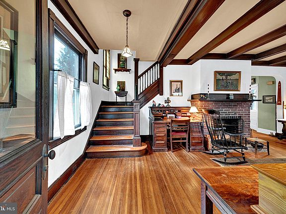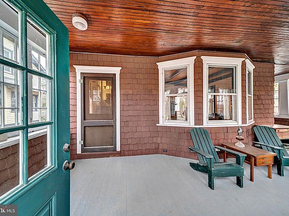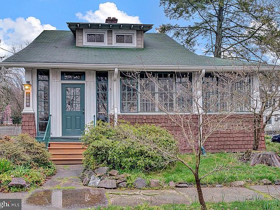 Welcome to "The Island" community of Trenton in Mercer County, NJ. This riverside enclave boasts fantastic views, varied historical styles of housing, tree lined streets and walkable access to Stacy Park. 1502 Riverside Dr. has a front row seat to life on the river. Sit back and enjoy relaxing sunsets from the enclosed front porch as the river flows gently by. This well built, classic Craftsman style Bungalow has retained many of the original features. Outside you will notice the gentle sloping roof with exposed rafter ends and centered dormers. Then there is the inviting wrap around porch with tapered columns and walls of windows. Lots of curb appeal here with the home's earthy tones and lush garden plantings. Entering the home through the front door brings you into the living room where your eyes will be drawn to the natural wood staircase, beamed ceiling and fireplace. The perfectly sized dining room with built in glass front cabinet is centrally located and accessible from everywhere on the first floor. Off of the dining room is the original tiled bath and first floor bedroom with built-in shelving cabinets. The flow continues into the kitchen which is bathed with natural light and has access to the back yard. Throughout the home there are hardwood floors, multi-paneled solid wood doors, ample closets and plenty of windows and natural light. Upstairs there are two generous size bedrooms, one with en-suite bathroom. There is also a full basement with stairs and bilco door to the outside where you'll find a garden tool shed in the back yard. Home is being sold As Is. Flood Insurance required.