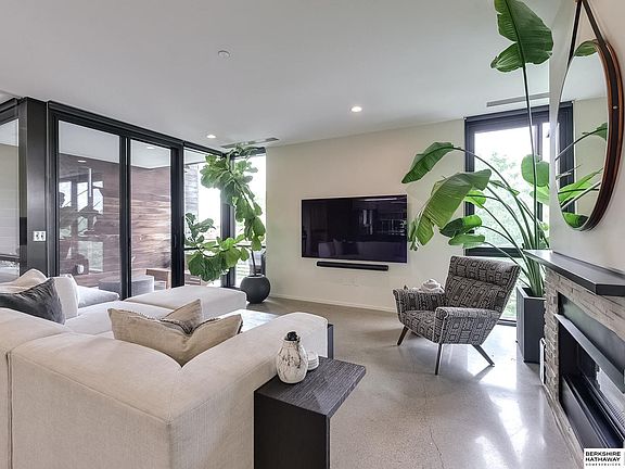 Welcome to your maintenance free dream home where the outside comes in w/ stunning natural light flooding every corner, enhancing the modern fixtures & contemporary design of this exquisite residence. Step inside & discover an inviting open concept layout, perfect for entertaining or relaxing in the warmth of the double sided FP that elegantly divides the living & dining areas. Guests can enjoy the 2nd bedroom w/ it's own bath or it could be a fabulous office space/reading area. The lush fully fenced garden includes a peaceful waterfall, beautiful plants, lovely trees & a serene oasis for all! Extend your living outside on the spacious covered balcony w/ almost 200 sf. & enjoy the tranquil surroundings from the 3rd floor. You'll enjoy the convenience of the heated garage, extra storage room just outside the unit, and trash chute. Nestled in a charming neighborhood, with easy access to local shops, restaurants, schools, churches, the #1 Zoo in the Nation, the Old Market, & so much more