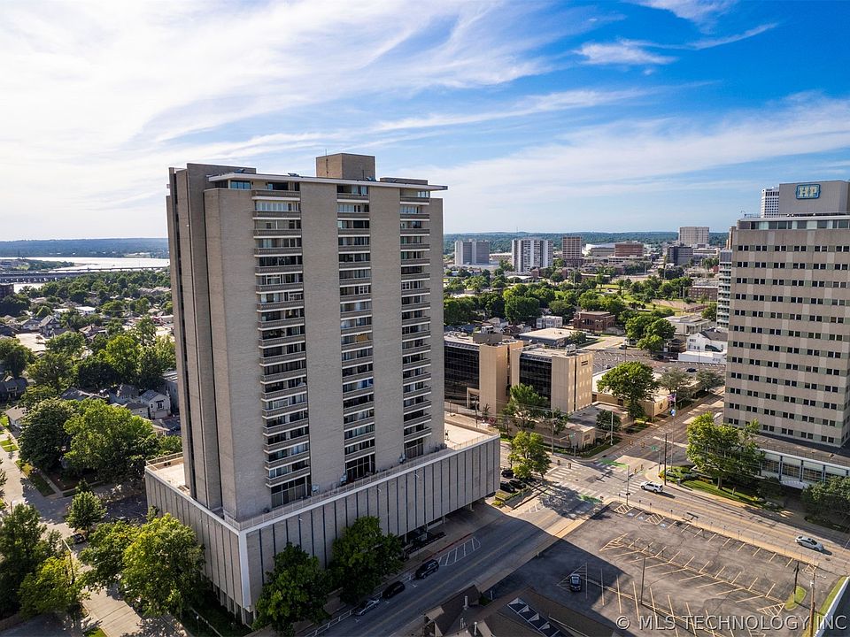 Xtra Large 1 Bedrm was originally 2 Bedrm. 2nd Bedrm converted to Office could easily be considered a Guest Bedrm. Master Bedrm ensuite Bath includes 2 WalkIn Closets. Full Hallway Bath. Hall Pantry. Galley Kitchen w/Fridge, Dishwasher, Range/Oven, Microwave & Disposal. Dining is combo w/Living. 18th Floor Balcony has Stupendous Southwest Views. Arkansas River & The Gathering Place visible from Master & Office Windows. Reserved Parking. Common area Clubrm, Pool, Fitness & Library. Available Now!