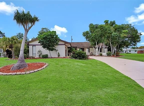 Perfect 1980 pool home located centrally in SE Cape Coral. Exceptionally longer driveway that leads up to a side-entry garage for hassle-free parking. Mature lush landscaping for added privacy. The pool is above average in size with an outdoor shower! 3 Bedroom, 2.5 baths. The half-bath is outside on the lanai for convenient pool use! Plumbed and wired for an outdoor summer kitchen! The kitchen has a relaxing view of the patio and tropical filled backyard. Tile all throughout home, no carpet. Spacious 2 car garage with added raised Washer and Dryer laundry station. Interior is freshly painted along with small cosmetic improvements. Remodeled bathroom vanities. Unique split floor plan with approximately 1400 sq ft. of living area. AC was replaced in 2015, Roof is from 2004. Please have your agent call to schedule a showing today! Property is vacant - short notice ok! 2019-05-24
