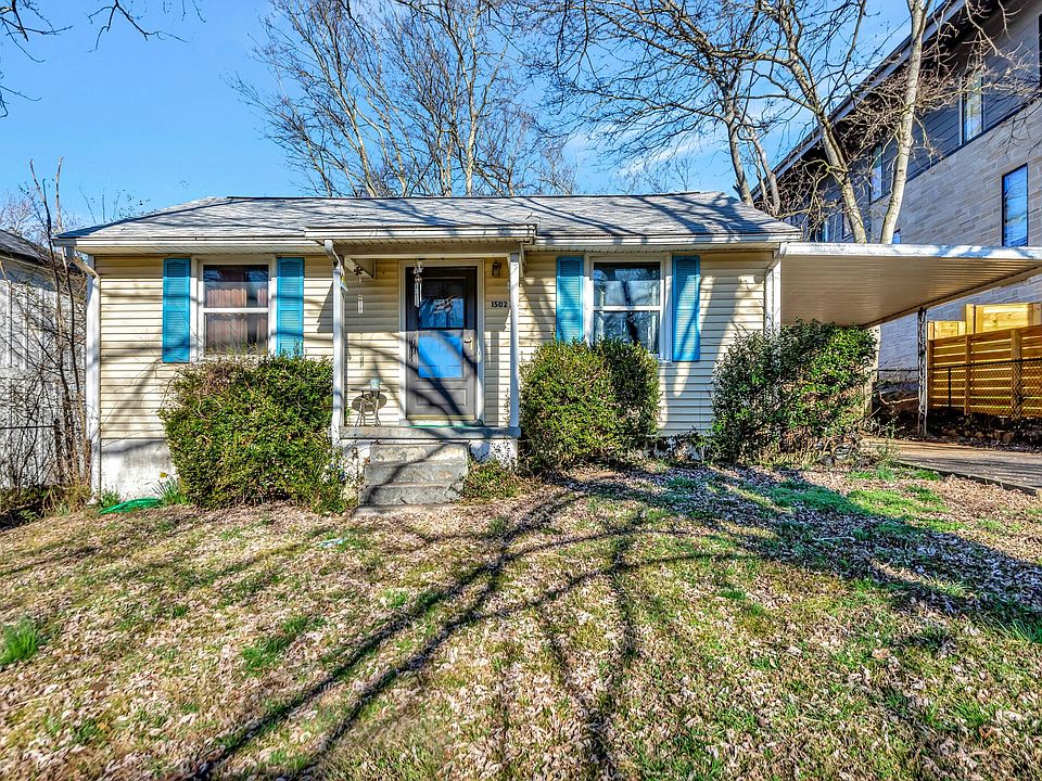 The property you have been waiting for--ideal EAST NASHVILLE home!! Million dollar homes on both sides. Buy as an INVESTMENT property, use as your personal HOME (seller has loved it for past 14 years) or BUILD your own home (rent it out while planning your build). Friendly cul-de-sac. Kitchen updated by prior owner. Hardwoods in Living Room, Hall and 2 Bedrooms. New LVP in bathroom. Primary bedroom has carpet, laminate floor in large dining area that faces the private backyard/trees. Lot is 55' x 155' and level, except slight rise at front of lot. The cottage home sits nicely on that rise. Carport. Fenced front 7 years ago--backyard was already fenced. New roof over original house 2020, house extension roofed about 10 years ago. Selling "As Is", inspections are welcome, seller moving out of state. Advance notice to view appreciated. Prefer 2 hr notice for seller to vacate w/ beloved pets. 1 hour may be possible. Showings Mon-Sat 10am-6pm. Sun 10am-3pm