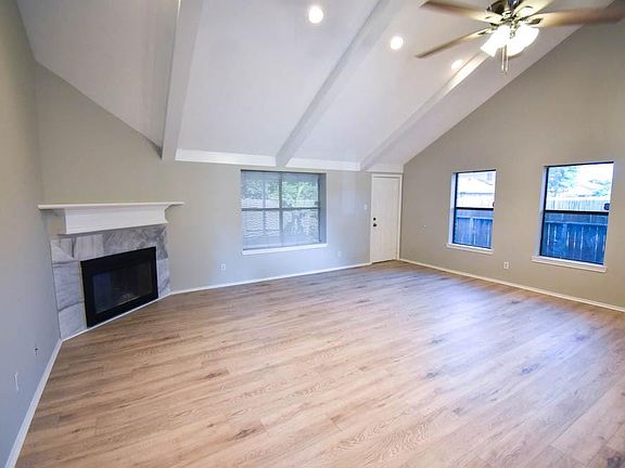 DID NOT FLOOD. Come take a look at this beautifully updated home in the established neighborhood of Sterling Green! This home has been upgraded from top to bottom. New carpet, hardwood laminate flooring, designer paint throughout , Updates fixtures, recently installed appliances, kitchen Island, water heater, brand new kitchen with granite counter-tops, new bedroom doors,updated bathrooms - vanities - counter-tops, vaulted ceilings in living room area and dinning area, huge covered patio perfect for entertaining... This 3 bedroom 2 bath on a corner lot is a RARE FIND with LOW TAXES also the Roof and AC is approximately 4-5 years old! Community pool is still open and ready for your kids.
