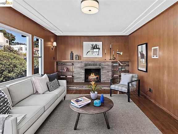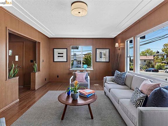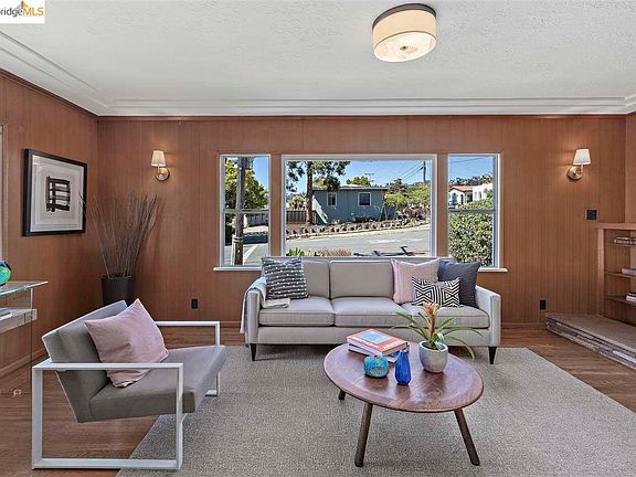 A traditional 3 bedroom Craftsman modernized in the mid-1950s with wonderful touches of Mid-century throughout. The living and dining rooms have gleaming hardwood floors and warm wood wall paneling. The spacious kitchen opens to the dining room allowing entertaining with ease. The kitchen is beautifully updated, as are the 2 full baths and one half bath. Downstairs, find fun 50s-style touches such as a rumpus room with a shuffleboard floor! Versatile outdoor spaces include a sunny deck on the top level and patio space below. An oversized detached garage has architectural plans and city approval for conversion into a 2 bedroom ADU*. On a sunny corner lot on one of the best streets in Albany, it is ideally located close to Marin Elementary School**, Terrace Park, and just a few blocks to the popular Solano Avenue commercial district with its wide array of specialty shops, restaurants, cafes and markets.
