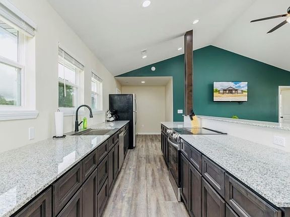 • Kitchen/Dining Room Combo, Open Floorplan, Walk-In Closet(s), Breakfast Bar, Kitchen Island, Custom Cabinetry, Eat-in Kitchen, Granite Counters, Solid Surface Countertop(s)