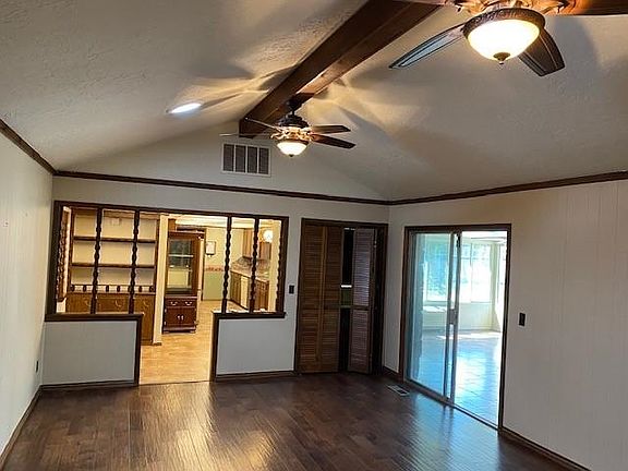 Retreat to the quiet and relaxing hilltop estate that overlooks the lake! This spacious 3 bed, 2 bath home has a large wooded and shady lot that is landscaped and privacy fenced. You'll appreciate the spacious bedrooms and closets. The homes have been updated wit high efficiency thermal windows and the heat & air system was updated with a high efficiency system. The hot water heater was replaced in July of 2021. Extra blown in insulation was added to the attic to increase the overall comfort of the home. This home has 3 spacious living areas with big windows for lots of natural sunlight and updated flooring. The family room has a large corner wood burning fireplace for those cold winter nights and a vaulted ceiling with a rustic wood beam. Off the back is a wonderful all season sunroom that leads out onto a beautiful half circle shaped stone paver patio. The back yard is an amazing space for outdoor entertaining. The crepe myrtles erupts in color in the spring and summer and there is also a screened in gazebo complete with wicker lawn furniture. The home has a security system, outdoor lighting, and an above ground storm shelter. It's all conveniently located near shopping and the airport.