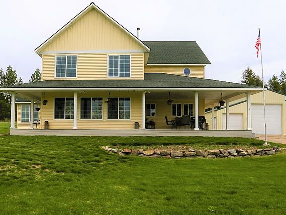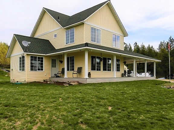 Private country setting on 10 acres with beautiful views. 3 bed/3 bath (wheelchair accessible bed/bath main floor). Large kitchen with island. Office/craft room. Laundry/mud room with outside entrance. Formal living room, family room with southern exposure windows for passive solar heat. Loft over family room. Central air/heat, pellet stove. Covered porch 3 sides. 30' x 36' shop. Garden area, pondless water fall. On school bus route. Paved all the way to driveway. Close to lakes and ski areas.