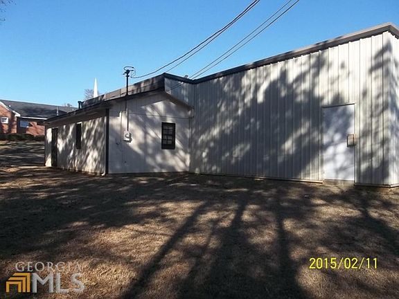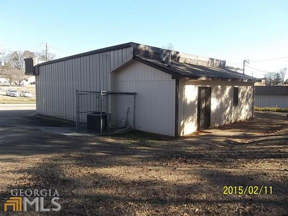 Wonderfully maintained and low maintenance metal building includes business/office area, 1800 square feet, presently being used as a church. Spacious main area, and 2 office areas in rear, 2 half baths. Sale also includes a storage room over 400 square feet with a roll up door for easy deliveries. A firewall separates the storage room. Property was previously used as a car lot. Alarm system included.
