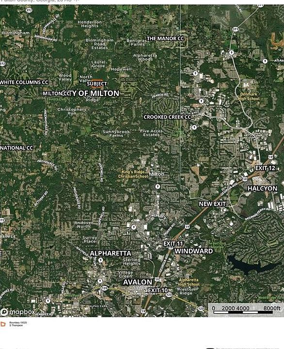 One of the finest land tracts 25 to 30 acres in the City of Milton. Perfect for a single estate or large lot subdivision without rezoning. Most likely the property will yield up to seven 3+ acre lots. The property was formerly a single estate largely in pasture for horses. The home was rented to various tenants for over 50 years. The house, barn and another outbuilding are in complete disrepair. There is a pond of 1+ acre which is fed by a small creek across a corner of the tract. The property has 625 feet of frontage on South Thompson Road.