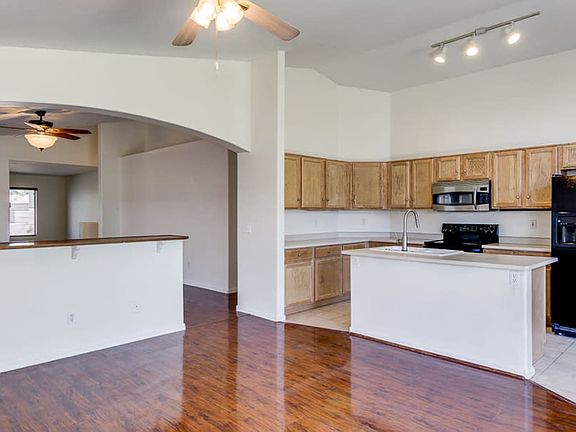 Fresh exterior and interior paint, new carpet, 12 mm laminate wood flooring in living room, dining, den, and master bedroom. Tile in entry and kitchen area. 2" wood blinds. Workbenches in both garage and outside shed, plus shelving in garage and cabinets in shed. Artificial grass in back yard and landscaped with trees and gravel with irrigation. AC installed 2015 with a SEER rating of 16. Solar water heater. Extra insulation in attic. Newer garage door opener and insulated garage door.