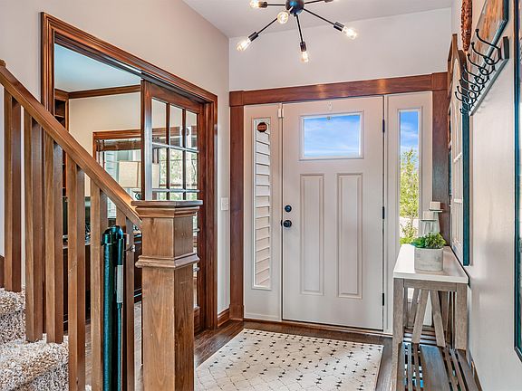 Welcome home to this stunning Craftsman-style home, perfectly situated on a peaceful cul-de-sac in the highly desirable Lakes of Jonathan's Landing. Featuring gorgeous water views and a blend of warmth with modern sophistication, this 4-bedroom residence is a true sanctuary of comfort. As you enter glass-paneled French doors through the foyer, you are seamlessly led into a refined home office, complete with custom built-in shelves that add a touch of grace. The great room features a cozy stone fireplace framed by built-ins and an impressive wall of windows that flood the space with natural light. This airy and open layout effortlessly connects to the second kitchen island, making it an entertainer's dream. This spacious kitchen features newer stainless steel appliances, abundant counter space, and is open to a bright breakfast nook. The adjacent outdoor deck is perfect for alfresco dining and enjoying the serene pond views. The main level’s primary suite is private and adorned with oversized windows that invite abundant light. The en suite bathroom is a luxe retreat, offering dual sinks, a deep garden tub, a separate shower, and a spacious walk-in closet. Completing the main level is a thoughtfully designed laundry room, a convenient half bath, and built-in lockers that lead to the garage. Upstairs, a versatile landing with a built-in desk provides a functional workspace, complemented by three additional bedrooms and a second full bath. The finished daylight basement offers a dynamic space for leisure and entertainment, featuring a stylish wet bar with a full-sized refrigerator, mounted TV for the big game, and Kegerater. There’s ample room for recreation and a family room area, complete with built-ins and a third full bath. Step outside to the backyard oasis, where a new fence encloses lush landscape and picturesque pond views, creating a peaceful retreat for relaxation. Situated near walking trails, a neighborhood pool, and within the esteemed SW schools district, this home combines idyllic amenities with community convenience.