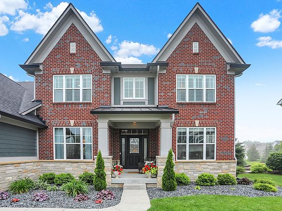Tucked away on one of Bridgewater's cul-de-sacs, this home offers elegance, comfort, and unmatched entertaining space on a beautifully landscaped 3/4-acre lot. From the moment you step inside, you're welcomed by a grand open floor plan bathed in natural light, with soaring ceilings and rich architectural details throughout. The two-story great room impresses with custom plantation shutters, a cozy gas fireplace with striking stone surround, and an adjacent sitting room perfect for relaxing or hosting. A formal dining room adds sophistication, while a flexible fifth bedroom easily functions as a home office or guest suite. The gourmet eat-in kitchen is a chef's dream, featuring granite countertops, a full island with bar seating, double ovens, gas cooktop, and premium cabinetry. A large 20x20 covered deck just off the kitchen invites year-round outdoor living and entertaining. Practical meets luxury with a spacious planning center and custom storage lockers off the three-car garage. Upstairs, retreat to your luxurious owner's suite boasting a spa-inspired bathroom with garden tub, walk-in tile shower, separate vanities with double sinks, and an expansive walk-in closet. Three additional bedrooms offer generous space and comfort for guests with two sharing a Jack and Jill bath and the other with a private en suite. The finished lower level is an entertainer's paradise, complete with a full bar featuring a kegerator, refrigerator, microwave, dishwasher, garbage disposal, and custom cabinetry. Host unforgettable movie nights in your private home theater with projector, 110-inch screen, surround sound, and theater seating-all included. Additional finished spaces offer flexibility for a home gym, second office, or bonus room. Meticulously maintained and professionally landscaped, this property blends comfort, elegance, and thoughtful design in every corner.