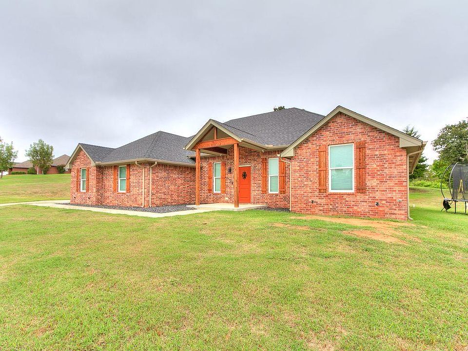 ***MOTIVATED SELLER! WILL ENTERTAIN ALL OFFERS*** USDA eligible! *NO HOA* Sitting on a spacious 1 acre mol corner lot in the desirable Scottsdale Addition, this beautiful 3 bedroom, 2.5 bath home combines comfort and style with plenty of space to grow. The open floor plan offers a large living room with a cozy gas log fireplace, perfect for relaxing or entertaining. The beautiful kitchen features a large island, quartz countertops, stainless steel appliances, gas range, abundant cabinet and counter space, and a walk-in pantry for maximum storage. The primary suite is spacious and leads into a dream bathroom with dual vanities, quartz counters, an extra large walk-in shower, and a generous walk-in closet. Both secondary bedrooms also feature walk-in closets and there are multiple storage closets throughout the home for convenience. Modern smart features integrated across the home including whole home security system with 13 cameras. Step outside to enjoy the covered back patio overlooking the nearly one acre with endless possibilities. Room for a shop, pool, or outdoor living. Conveniently located near Choctaw amenities, I-40, and Tinker Air Force Base, and just about 20 minutes to downtown OKC. This home has it all! Schedule your showing before it’s gone!