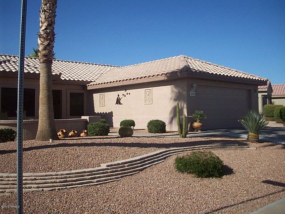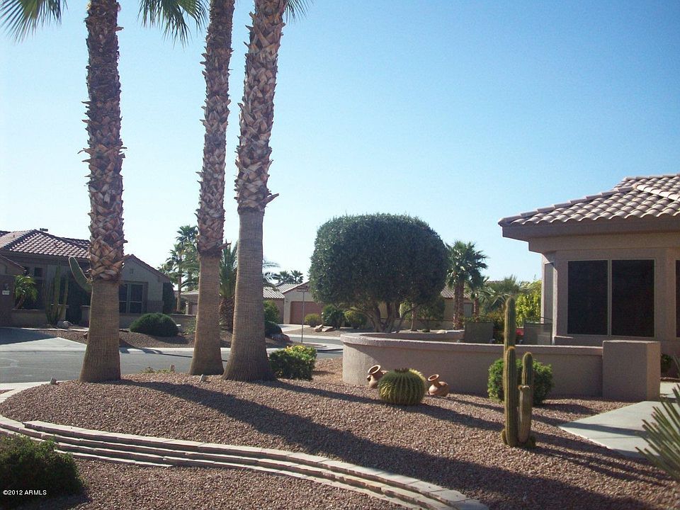 For more information on this property, contact the Listing Agent, Catherine Barton at (623) 826-9392 or CatherineBarton@cox.net. Beautiful, Placid Setting Nestled Among Towering Palms Flattered by Massive Moss Rock Water Feature. Delightful Front and Back Entertaining Areas, Cozy Enough for Two or Large Enough for a Group. MOUNTAIN VIEWS from Back Patio. CUSTOM HOME. "Expanded" Popular Willow/Cypress Model -Expanded Dining/Great Room Area! You will LOVE the EXTENDED GARAGE with Oodles of Storage and Fun Upgrades. All of this on a Commanding Oversized Homesite in a Great Neighborhood. Tucked Away yet near the Ball Park, Woodworking Center, Shopping and Medical. Light and Airy. Washer, Dryer, Refrigerator with Beverage Door Remain. Nickel Faucet, Raised Panel Maple Cabs with Knobs, Cabs at Laundry, Diagonal Tile, Dual Sinks at MST Bath, Upgraded Shower Head, Security Door at Front, Three Mature Fruit Trees, 6 Palm