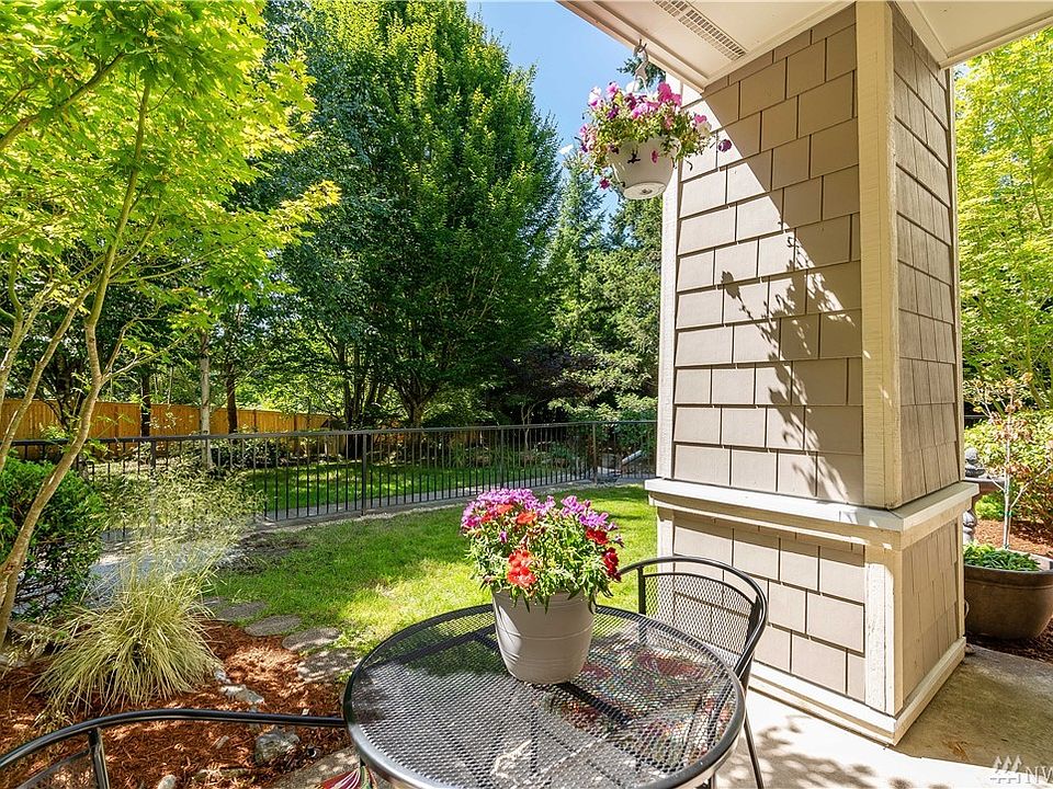 A private oasis w/ fully fenced yard, peaceful view, & individual garage just steps from your entry. This ground floor, end unit condo is filled w/ natural light & is perfect for pets! Kitchen has ample cabinets & counterspace, ss app, & walk-in pantry. Enjoy a spacious feel w/ dining area open to living room, leading out to your covered patio. Gas fp is fabulous for relaxing! Large master suite includes sitting room, full bath, & walk-in closet. Add'l pkg space, clubhouse, fitness room, & more!