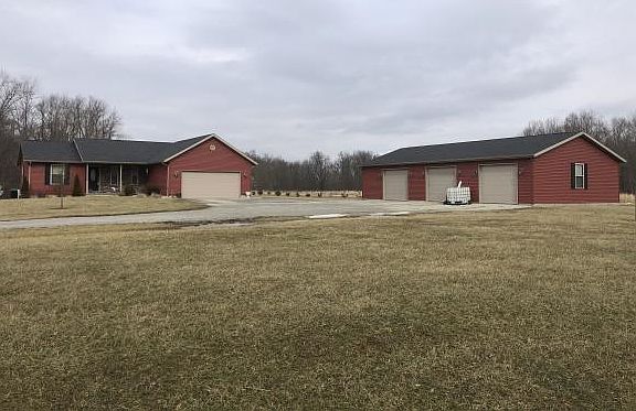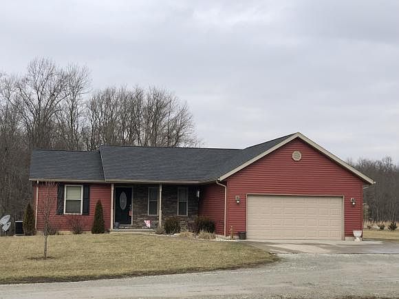 Built In 2013 this 1,252 sq ft ranch on 4.646 acres offers an open floor plan with 2 bedrooms and 2 baths on the main level, cathedral ceilings in the living room, fully equipped kitchen with counter bar and Corina countertops. The finished lower level features a family room, full bathroom, 3rd bedroom, and a rec area that walks out to a stamped concrete patio with a built in fire pit. Plenty of room for your toys in the 30x52 three car detached garage complete with heat and 1/2 bath. Frontier internet now available!