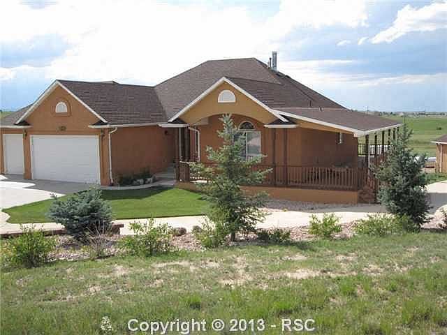 10+ beautiful acres LOADED w/abundant wildflowers! Large D-20 ranch home sits on over 10 acres w/gorgeous Pikes peak views & the Front Range! Exquisite hardwood flooring on most of the main level, Cathedral ceilings, 42" cabinets in the kitchen, new granite counters, bullnose corners, all new stainless steel appliances, hobby bonus room or ready for additional kitchen & huge 27x15 theatre room with sound wired in. The attached garage has room for 3 cars & the detached garage has a wood burning stove & room for 3 cars w/1 overhead door. Zoning allows for horses. See Supp Remarks