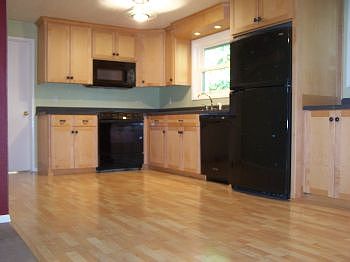 This beautiful newly updated 3 BR 2 bath ranch stylehome features Laminate flooring in the kitchen and dining room, allblack appliances include a 2 door frig with ice maker, range,dishwasher, microwave and garbage disposal. There is also a laundryroom with hook ups and a storage room. The bedrooms, living roomand family room are carpeted, family room has a ceiling fan,fireplace insert and wall mounted AC unit. There is an attacheddouble car garage with electric opener and alarm system for thehouse (tenant responsible for alarm service if used). The fullyfenced back yard has a deck, shed, small fountain pond, tree houseand covered firewood storage area along East side of the house. NOSMOKING ON INTERIOR!! Close to bus line, schools, parks, shoppingand eateries. This is a NO PETS ALLOWED!! RENT UPONLY!!