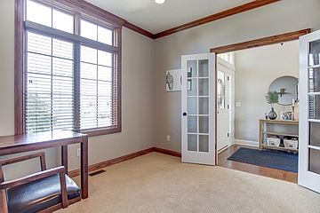 - Ceiling Fan(s), Breakfast Bar, Kitchen Island, Great Room, Eat-in Kitchen, Crown Molding, Entrance Foyer, Tray Ceiling(s), Countertops-Solid Surf, Main Level Bedroom Suite, Stand Up Shower, Split Br Floor Plan, Utility Sink