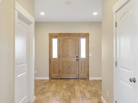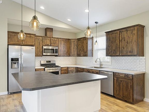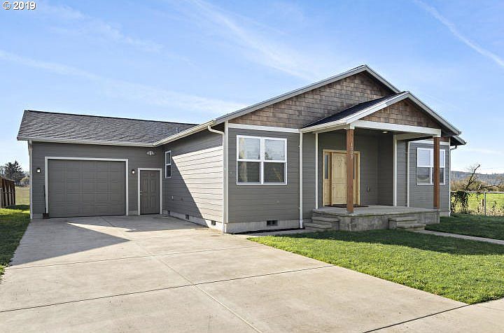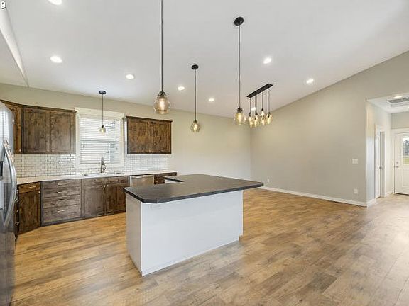 NEWER,custom built,move in ready home! Quality construction. Beautiful one level home. Quiet, dead end street near town. 3 bd, 2 bth, w/bright, open living space. Vaulted ceilings w/exposed wood beam & crner fireplace create an elegant, warm feel. Knotty alder front door leads in to the large entry, and continues in to the kitchen/living area where Walnut stained alder cabinets& contrasting white tile bcksplsh make a statement.