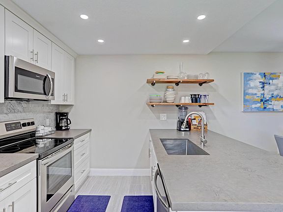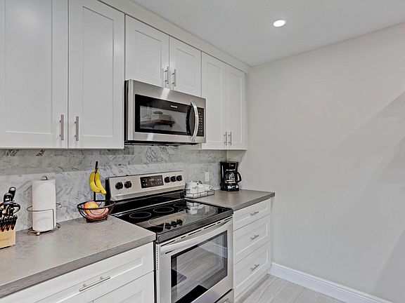 Stunning remodeled townhouse with designer touches throughout. Wide plank wood look tile floors throughout with 5 1/4 baseboards and fully upgraded & updated kitchen with a newer stainless steel appliances, shaker style white cabinets with soft closing doors and drawers and beautiful dark grey quartz countertops. Kitchen & baths cabinets & countertops match throughout the home. Both main bathrooms have been renovated with the latest high end look as has the half bath downstairs. A/C 2016 and maintained twice a year. New accordion hurricane shutters installed 2019. Water Heater, washer and dryer also 2019. Water and basic cable included in HOA. Community also includes tennis, basketball, pools and 2 parks. Centrally located to shopping, malls, dining, entertainment and much much more.