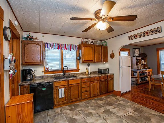 Beautiful hidden treasure in the heart of Wamego. Most people will drive by this home and never see it. It was an original homestead in Wamego and now has a perimeter of fencing around the property with a mechanical gate that opens to the charming wooded property. Very private home that boasts a two truck shop, with heating and air. A sturdy new fence and many updates have been added to the property! Screened in and finished back porch. Built 6 foot privacy fence around entire property Added kitchen cabinets, countertops and pantry Installed Custom made Iron gate with electric opener Re-rocked driveway and installed drainage system under gate Built flower bed and installed drains for rain water drainage. Built retaining wall on South side of flower bed. Replaced all water lines in the house (Aug 2019) Spickets on exterior of house replaced Installed new kitchen sink, faucet and garbage disposal. And many more updates.Sewer line replaced (July 2020) and more updates!