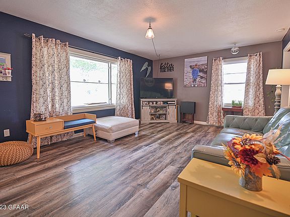 This spacious house offers 5 bedrooms and 2 bathrooms, providing plenty of room for comfortable living. The large rooms and recent updates create a modern and welcoming atmosphere. Additionally, it features an attached 2-stall garage for convenient parking. The main floor accommodates 3 bedrooms, while the remaining 2 bedrooms are located downstairs. Situated across the street from New Heights Elementary, which is also the site of the EGF school bus depot, and just 3 blocks away from East Grand Forks High School, the house enjoys a prime location. The Grand Forks Greenway is also conveniently within a 3-block distance, offering easy access to outdoor recreational activities. Privacy takes center stage in this remarkable home, highlighted by a fenced backyard that ensures a secluded atmosphere. For added versatility, the backyard includes a storage shed that can double as a dog kennel if needed. Unwind and find solace on the deck, providing a serene space to relax and enjoy your well-deserved downtime. All new upstairs windows, all new entry doors, LVP floors, seamless steel siding, Lennox central air system.