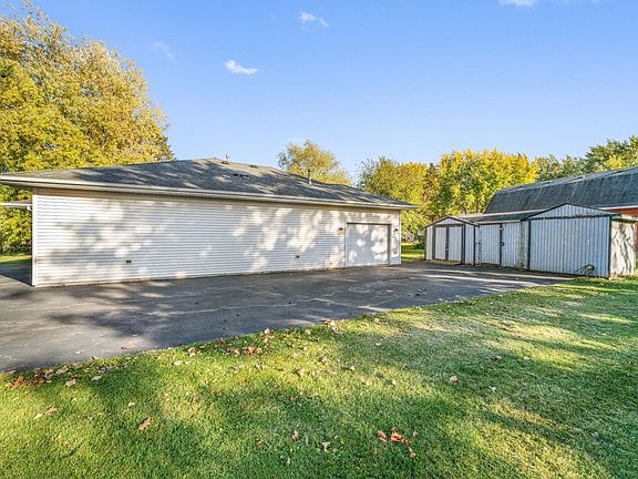 A VERY RARE CUSTOM BUILT RANCH HOME SITUATED ON .71 ACRES SHOWCASES ONE OF A KIND GARAGES WITH WORKSHOP/OFFICE . Be prepared to be wowed! The welcoming covered porch invites you into this single floor living at its finest with amazing sightlines. The abundance of windows allows natural light to pour into every room. Find hardwood floors throughout most of the main floor. Den is located upfront with a closet.... Need to work from home? You are covered! Spacious living room with a gas fireplace with stone surround and mantle, vaulted ceilings and skylights. Eat-in Kitchen features 42' oak cabinets, tile backsplash, Corian countertops, island, pantry and tons of counter space. Dining room is plenty big to host your family gatherings. Entertaining here never looked so EASY. Right off the kitchen is the sunroom with tons of natural light that leads onto your 12X16 deck.... the perfect spot to unwind after a long day! Convenient 1st floor laundry room has plenty of room with oak cabinets and counter space... washer/dryer stay plus there is a 1/2 bath. Primary suite has hardwood floors, walk in closet and ensuite bathroom with double sinks, tub and separate shower. 2 additional bedrooms with hall bathroom complete the 1st floor. The oak railing leads you down to EXPANSIVE finished basement! It features a 4th bedroom, 3rd bathroom, family room, rec room with 2nd gas fireplace, bar plus 2 storage rooms. The garages are UNBELIEVABLE with over 1550 square ft! 2 car garage with thermostat controlled heater, cold water and floor drain with water/oil separator. Walk through to your attached 4+ car garage, office, 9 ft overhead door, 7 ft overhead door, thermostat controlled heater, wall A/C unit, utility sink with hot/cold water, 2 floor drains with water/oil separators, 220 Amp service, air hoses/reels and cable ready. This is a true MAN CAVE! If you don't have enough storage already, there is a shed! YOUR WAIT IS OVER, THIS HOME TRULY HAS IT ALL!