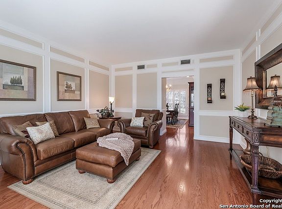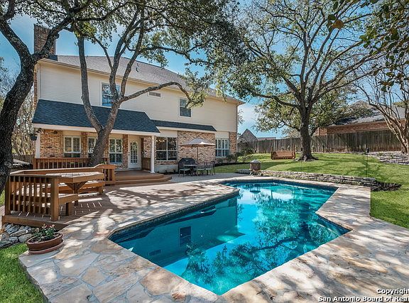 Gorgeous home situated on large cul-de-sac lot in coveted Deerfield. Private backyard oasis w/pool, hot tub, extended covered patio, deck & mature oaks. This home boasts hardwoods, plantation shutters, beautifully updated baths, fixtures & lighting, spacious bedrooms w/walkin closet & over-sized side entry garage. Gourmet kitchen w/granite, lg. island, SS appl. & wine fridge. Private master w/stunning bath & custom closet. Outstanding NEISD Schools - Great Neighborhood Amenities - Convenient to Everything!