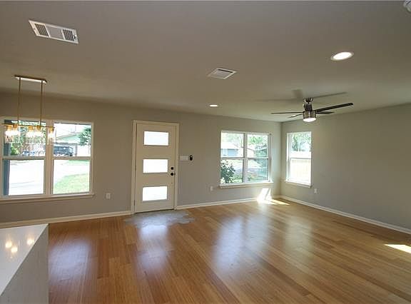 A+ Delwood4 remodel! Open concept from roomy LivRm to the modern Kitchen: SS appliances, solid-surface countertops. Wood floors with inlaid tile. Updated lighting and plumbing fixtures. Bathroom with double sinks. Shower w craftsman surround. Utility Rm w atrium doors. Sodded front yard. Stucco siding. Tankless Wtr Heater. Recent windows, electrical, driveway and privacy fencing. 10 min to downtown per googlemaps. So close to the shopping and amenities of nearby Mueller Development. Agent is an owner.