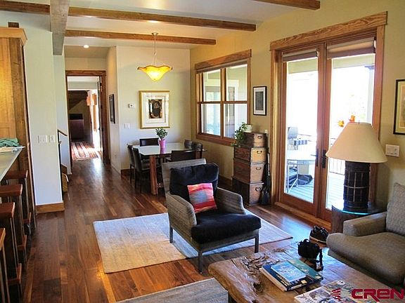 This contemporary masterpiece sits along historic East 3rd Avenue and on the Animas River. With over 3400 square feet of living area including three large bedrooms, four bathrooms and a two car garage, this home boasts the highest quality construction and finishes in the area. The open kitchen with a Wolf Range, Jenn-Air appliances, concrete and custom wood countertops, cherry cabinets,flow into the living area make way to the large covered deck overlooking the Animas River and La Plata Mountains. The lovely master suite offers privacy off the main level, with a gorgeous plaster fireplace, oversized walk-in closet, separate soaking tub and beautiful finishes to create your own personal oasis. There is also a private office or studio located off the master suite leading to the back deck and creating a lovely flow through the home. The gorgeous walnut floors, custom built-in cabinetry reclaimed from the historic Day House, custom cherry kitchen cabinets, concrete slab and butcher block counter tops, reclaimed barn wood, built in sound system and hand-made steel railings add to the list of high-end finishes. This is a rare opportunity to find a high-efficiency custom home with all the bells and whistles in town and ON the Animas River. This home can be sold partially furnished. Please request a list of exclusions.