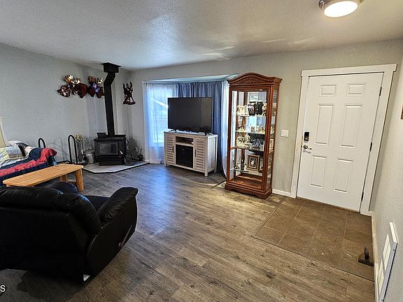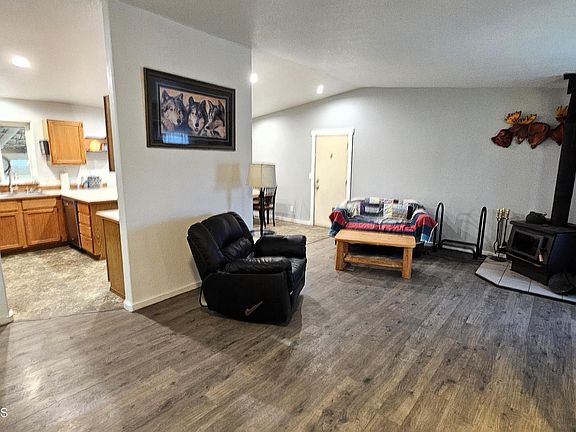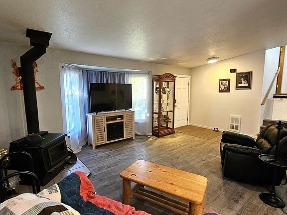 Come warm up by the woodstove in this wonderful home. This 1,696 sq.ft. home features 3 bedrooms and 2 bathrooms with an office. Come enjoy a relaxing soak in the hot tub located under the private covered porch while you snack on plum's, cherry's and apple's from your very own fruit tree's. You will have all the garage space you could ever want with a 3 car garage or use the 3rd oversized garage bay as your very own shop. Private as you can get living in town with no rear neighbors. The home features an optional HOA that gives you private access to the community riverfront park.