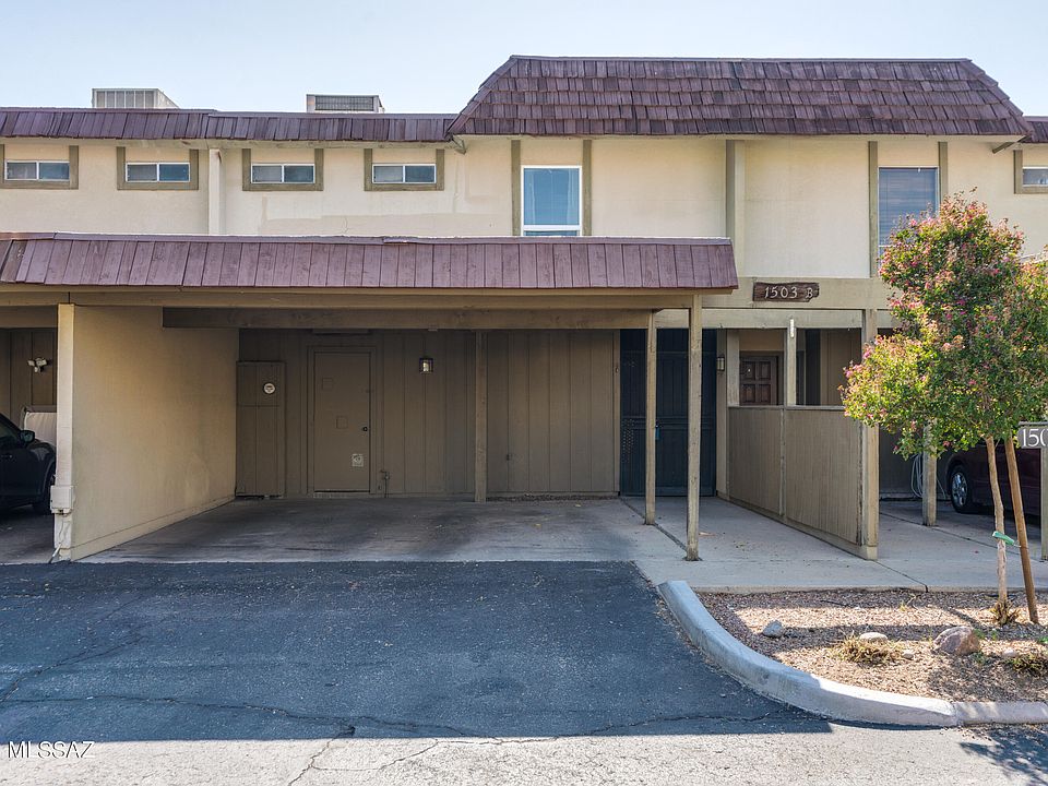 This is a fabulous place to call home! A beautiful, newly remodeled kitchen with a breakfast bar and adjoining dining room that opens to the greatroom for a fabulous open concept floor plan. A spacious living area with a door that lead to the serene backyard with a covered patio. Total of 3 bedrooms and 2 1/2 baths with a primary ensuite with a large walk-in closet. Laundry room with washer & dryer and plenty of storage as well as two additional storage rooms and a 2 car carport. New shake roof tiles and roof recoated 2023. The community offers a refreshing pool, basketball court and play area. Great Central location close to UofA, Banner Hospital, hiking, biking, shopping and dining.