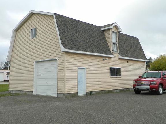 27' x 40' Heated & Insulated Garage with 8" concrete floor. 11' ceilings. (3) - 9' x 10' Overhead doors with automatic garage door openers. 10' x 17' office. 21' x 40' Upstairs is partially finished, with electric, heat, insulated, and partial plumbing to the bathroom. 2' x 6' Construction. Set up for 2nd bath. Natural Gas, maintenance free vinyl siding. Gravel Parking lot. 2022 New Forced Air Furnace. 2021 New Roof. Septic & Well in place. Located downtown Spruce at the corner of Gillard & Spruce on just over one acre.