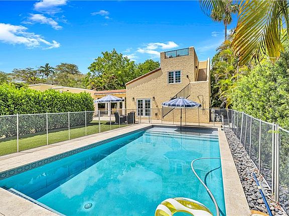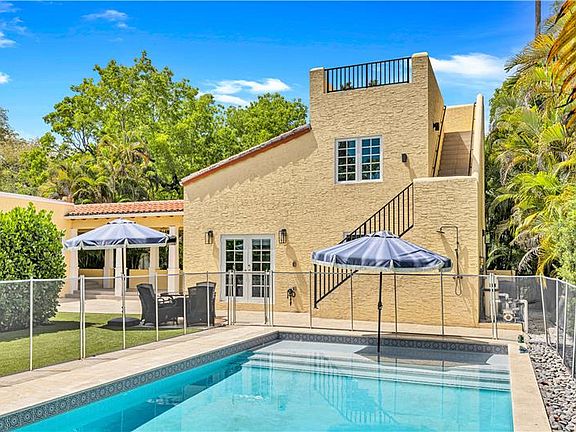 Discover timeless elegance in this beautifully updated 4-bedroom, 3-bathroom Coral Gables home with a versatile den, situated on an expansive 9,500 sq ft lot. The updated kitchen boasts sleek quartz countertops, SS appliances, a gas stove and custom cabinetryperfect for both everyday living and entertaining. Impact windows and doors. Bright primary bathroom with dual sinks, hardwood floors throughout & built-out walk-in closets. The private yard has a large pool ,astro turf and a stunning 2 story guest house with 2 story living space , bathroom and loft style bedroom. Perfect for multi-generational living, work from home, art studio, gym and more! Available for long term lease.close to CG country club, Miracle Mile and more
