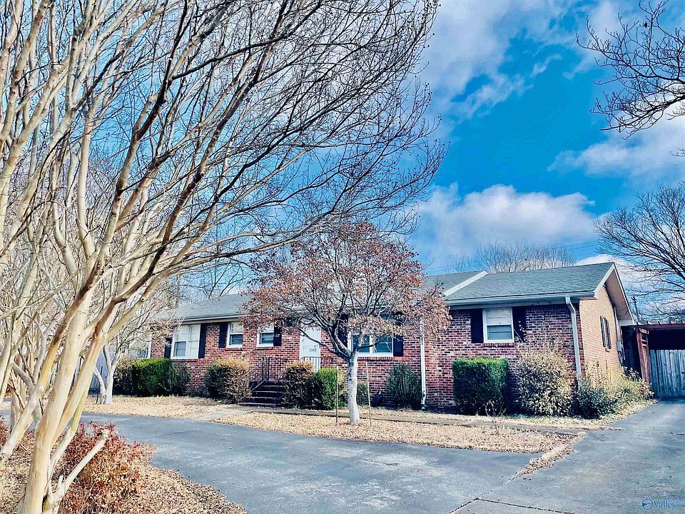 A circular drive welcomes you to this spacious find in Athens City Limits. Isolated main living area offers built-in shelving with distinctive lighting highlighting the gas log fireplace & tv area w/French Doors. Master bedroom offers a professional designed closet w/an enormous bath leading out to the deck. 2nd bedroom offers its updated private 1/2 bath. The hall bath is updated with a furniture vanity and shower located across the hall from 3rd bedroom. Large eat-in kitchen w/French doors. Detached garden shed and covered shed for parking in the large backyard. Property sold AS IS.