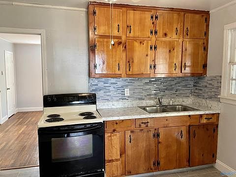 2 BR/1BA house in East Gadsden featuring newer HVAC system, refinished hardwood floors and new LVP flooring, side entry carport and fenced back yard. Home also includes stove and refrigerator and separate laundry room. Tenant pays for all utilities. No smoking. Small pets are allowed with non-refundable pet deposit.