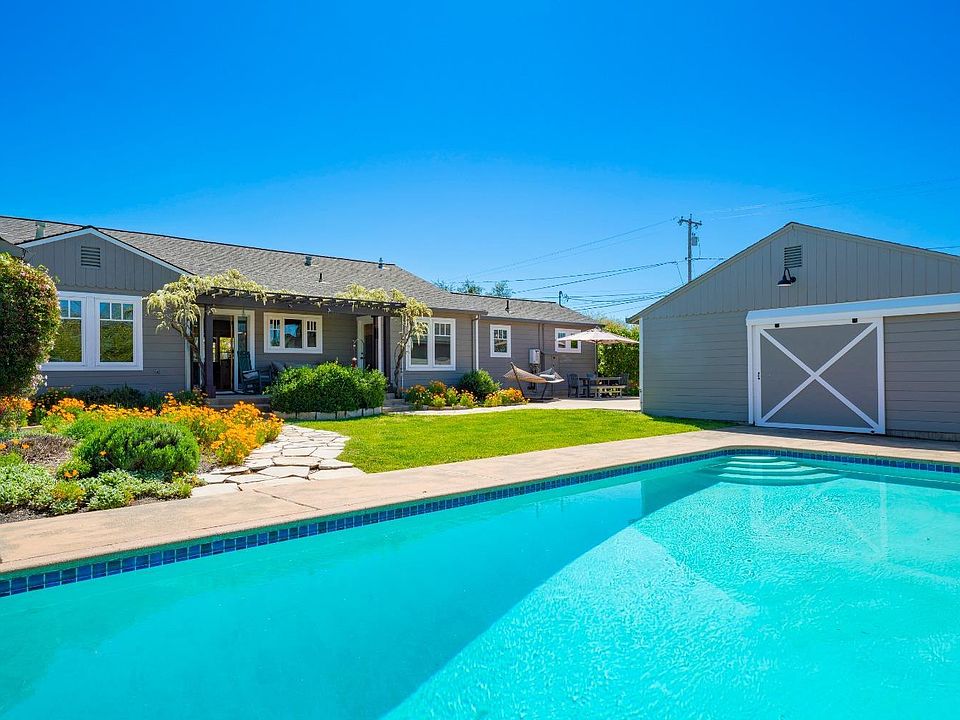 Situated on a large corner lot, this lovely 4 bed 3 bath home has been tastefully updated throughout. The kitchen features soapstone countertops and all the bathrooms have been nicely updated. The single level open floor plan is just one of the features that make this home so desirable and comfortable. There is a large formal living room and separate den close to the primary bedroom. The large mudroom is "a dream come true" with a pantry, a built-in home office and separate outdoor access from the backyard. Entertaining is a breeze with this oversized in-town lot and in-ground pool! Both sides of the home have raised garden beds and mature fruit trees: peach, apple, orange, lemon and fig trees. There is plenty of storage space in the detached garage and storage shed. There are 2 indoor parking spaces, 1 off street large parking area for a large vehicle or boat and lots of on street parking for you guests. Only 1.5 miles to the Healdsburg Plaza, this property won't last long!