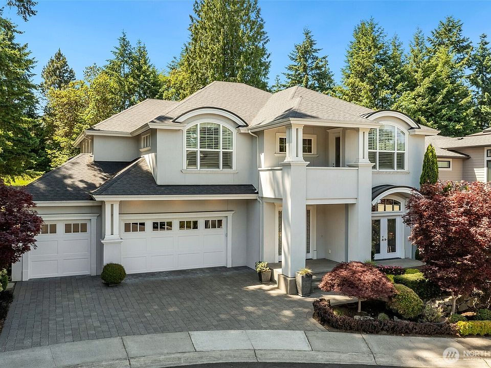 Elegant luxury home. Grand entry sets the tone w/gleaming marble floors, soaring ceilings, showstopping Dale Chihuly chandelier crowning a sweeping staircase. Main level offers open-concept living. Gourmet chef’s kitchen impresses w/high-end appls, built-in refrigerator, gas range, custom cabinetry, island, designer lighting. Kitchen opens seamlessly to great room w/cozy fireplace & French doors leading to stunning covered deck w/skylights, 2nd fireplace, fully fenced yard. Also on main- formal dining room, guest bedroom, private office. Upstairs, spacious bonus room anchors 3 generous bedrooms, including opulent primary suite complete w/private deck and spa-like en suite bath—your own serene sanctuary. Great location and Issaquah schools!