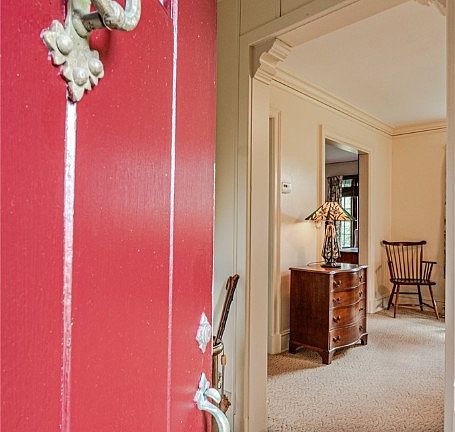 The bright & sunny living room features a wood-burning fireplace and a wall of built-in shelves & cabinetry with leaded glass & a cozy window seat. From the living room, you will enter a handsome study with a walkout to the backyard, built-in bookshelves & a spacious closet, making the room also ideal to function as a main level bedroom! The formal dining room can be accessed from the study, the living room and the kitchen. The fully applianced kitchen is an adorable throwback with original cabinets, tile flooring, updated appliances & a precious breakfast nook. A convenient half bath rounds out the first floor.