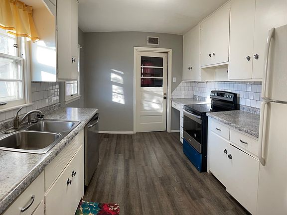 This is a charming home total 4 bedrooms 2 bathrooms. Hardwood Flooring/Vinyl!! No Carpet!! Must see with one car garage attached. It has two entry doors, one is main one with 3 bedrooms and one bathroom and another door with a very small mother in law suite that has it's own entrance with separate electrical bill. Nice countertop in kitchen with major appliances included, central A/C and heat. Closer to WSU and Dillons with a lot of convenient stores around. Wash and dryer hook up only. Renter pay for all utilities and yard mowing. Online application: Zillow's online application per adult. Security Deposit: One month rent Pet deposit: $150 per pet/ one time fee and non-refundable. All Pets need to be approved by owner. Please text or call 518 - Six 0 Eight 0 Renters pay all utilities, trash, and mow yard.