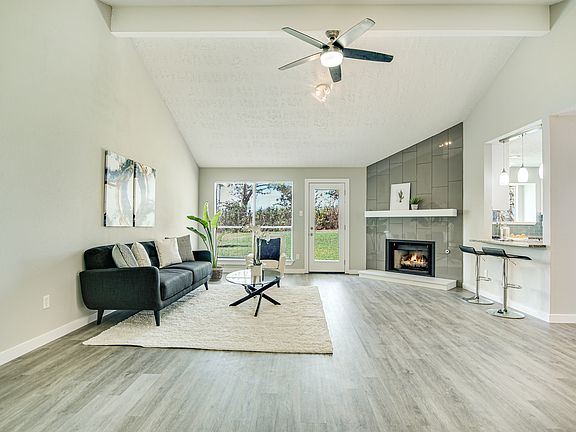 Lovely remodeled home with large yard and no HOA! Newly installed hard-surface floors throughout (No Carpet), new cabinets, granite countertops in the kitchen, quartz countertops in the bathrooms, and modern tile fireplace accent wall. Interior was freshly painted with upgraded trim. Vaulted ceilings in the large, open living area. Open concept living with kitchen overlooking the living and dining space. Large, fenced yard offering privacy with no neighbors behind you, just an open field. *Listing Agent is Owner*