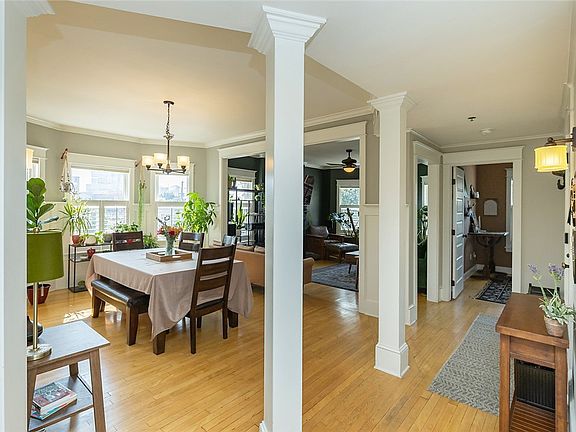 Charming historic condo in Sherman Hill! As soon as you step into this beautifully maintained condo, you'll fall in love. The dining area features original built-ins and hardwood flooring throughout. The spacious living room boasts a fireplace, 9-foot ceilings that allow tons of natural light, and a stunning downtown view. The updated kitchen includes granite countertops and stainless steel appliances. Down the hall, you'll find a spacious bedroom with a walk-in closet and a space for a pocket office or dressing area, offering another stunning downtown view. Continue, and you'll discover a second bedroom, a laundry area, and a gorgeous updated full bathroom. Spend your evenings relaxing on the deck or enjoying the community patio, garden, and green space. Additional 5x8 storage is available in the basement. 2 garage stalls are included with this condo. This secure building is located within walking distance of the shops and restaurants of Sherman Hill and downtown. Don’t miss your chance to own a piece of history!